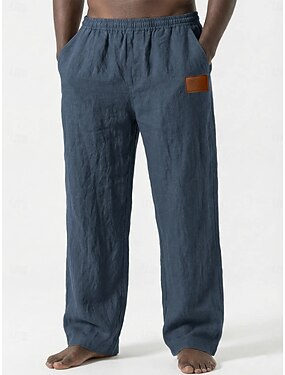 Herre Linbukser Bukser Sommerbukser Posete bukser Elastisk midje Rett ben عادي Komfort Lettvekt Full lengde Avslappet Daglig utendørs Mote Klassisk Stil Blå Svart Uelastisk