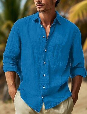 Herre Linskjorte Sommerskjorte Strand Klær Uformell skjorte Skjorte med knapper عادي Feriereise Avslappet Blå Svart Hvit Rosa Langermet Knaphul Vår sommer Klær