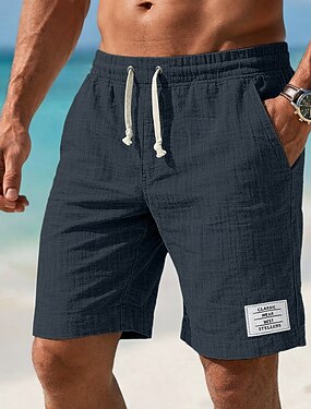 Herre Shorts Lin Shorts Sommershorts Strandshorts Løstsittende shorts Lomme Elastisk midje عادي Komfort Pustende Knelengde utendørs Ferie Business Casual Mote Klassisk Stil Blå Svart Uelastisk