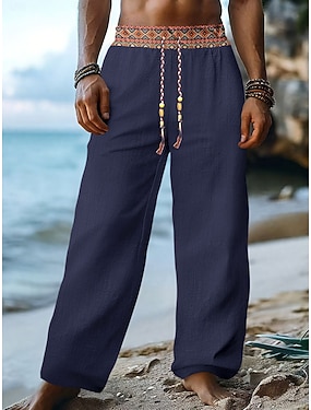 Herre Bukser Sommerbukser Posete bukser Strandbukser Snorer Lomme Elastisk midje عادي Komfort Pustende Full lengde Avslappet Daglig utendørs Hawaiisk Bohemsk Svart Hvit Uelastisk