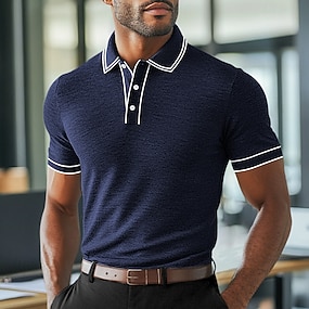 Herre Golf skjorte Piké poloskjorter Arbeid Avslappet Knaphul Ribbet polokrage Kortermet Grunnleggende Moderne Fargeblokk Lapper Knapper Vår sommer Normal Lyseblå Svart Hvit Burgunder Navyblå Lysegrå