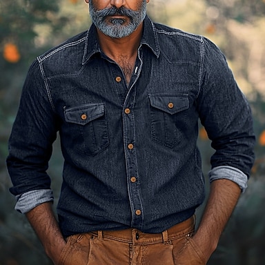 Herre Skjorte Chambray skjorte Calico skjorte Uformell skjorte Skjorte med knapper Dongeriskjorte Svart Navyblå Blå Lyseblå Langermet عادي Krage Feriereise Daglig Klær Mote Fritid