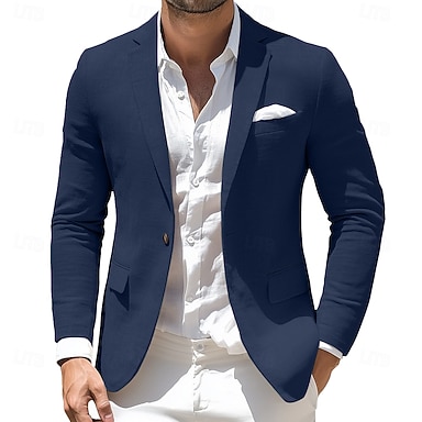 Herre Blazer i lin Sport Coat Halskrage Mote Ensfarget Blazer Sjø blå Svart Navyblå Standard passform Enkelt Brystet Enn-knapp