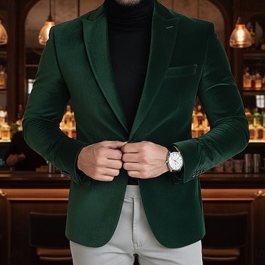 Herre Blazer jakke ملابس السهرة للرجال Lukkekrage Mote Fritid Fløyel Ensfarget Grønn Skreddersydd Single Breasted To-knapper