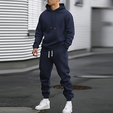 Herre Hattetrøje Joggedress sweatsuit Svart Rød Navyblå Kakifarget lysegrå Med hette عادي Lomme 2 deler Sport & Utendørs Daglig Ferie Polyester Gatemote Grunnleggende Fritid Vår Høst Klær Gensere