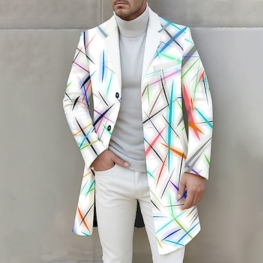 Herre Geometrisk Linje Ytterfrakk Frakk Hold Varm Bekvem Fritid Virksomhet Daglig 3D-utskrift Knapper Lomme foran Vår Høst Vinter Med hakk Langermet Svart Hvit