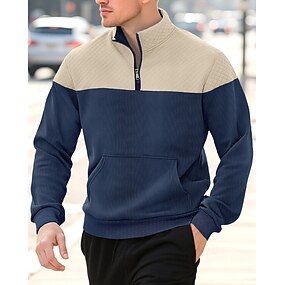 Herre Vaffel poloskjorter Med Tekstur Avslappet Sport & Utendørs Quarter Zip Langermet Mote Bekvem Ta igjen glidelåsen Lomme Høst Vår & Vinter Kryss-sesonger Komfortabel form Hvit Navyblå Lilla