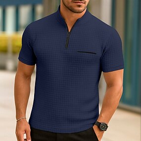 Herre Vaffel poloskjorter Zip Polo Avslappet Ferie Quarter Zip Kortermet Mote Grunnleggende عادي Quarter Zip Sommer Vår Alle årstider Svart Hvit Navyblå Oransje Vaffel poloskjorter