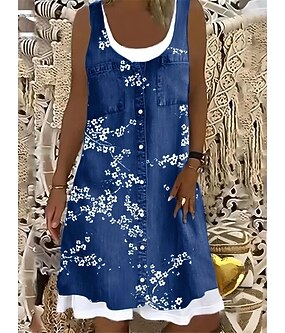 Dame Lang kjole Maxikjole Uformell kjole Floral kjole Stilfull Fritid Feriereise Avslappet Daglig Normal Blomstret Ermeløs U-hals Navyblå Brun Grå Lyseblå Vår Høst