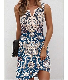 Kvinners Mini Kjole Casual Kjole Petite Kjole Sommertid Kjole Casual Ferie Daglig Høytids Regular Fit Blomster Grafisk Bohemsk Uten Ermer V Hals Rød Marineblå Blå Lilla Sommer