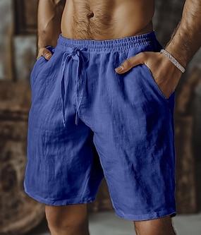 Herre Linbukser Bukser Sommerbukser Snorer Elastisk midje Rett ben عادي Komfort Pustende Full lengde Avslappet Daglig Ferie Ferie Mote Svart Hvit
