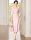 A-linje Kjole til brudens mor Formell Elegant V-hals Ankellengde Sateng Polyester 3/4 ermer med Ensfarget
