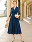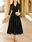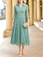A-Linje Mor til Bruden Cocktailkjoler Elegant Kjole Formell Bryllup Te Lengde 3/4 Lengde Ermer Skjorte Krage Sateng med Blomsterperler Dantell