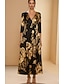 A-Linje Mor til Bruden Portrett Krave Kveldsdrakt Elegant Formell Kjole Formell Bryllup Midi Lengde Te Lengde 3/4 Lengde Ermer V Hals Stretch Sateng med Blomsterprint