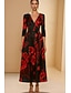 A-linjeformet cocktailkjole elegant formell kjole formelt bryllup te-lang 3/4-ermet v-hals sateng med blomstertrykk 2025