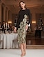 Svart Blomstret Mor til Bruden A-Linje Cocktailkjoler Stretch Crepe Elegant Formell Kjole Formell Bryllup Te Lengde 3/4 Lengde Ermer V Hals Sateng