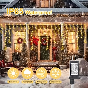 2-i-1 meteorregn lyslenke 30 cm * 16 rør 384 LED-perler innendørs og utendørs gårdsplass hage balkong veranda takskjegg bryllup festival atmosfære dekorasjon lyslenke lavspenning sikker plugg inn