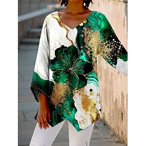 Dame Bluse Trykt mønster Blomstret Grafisk Årgang Stilfull Fritid 3/4 ermer V-hals Vanlige topper Daglig Ferie Blå Rød Lilla Grønn Vår Høst