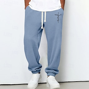 Herre Joggebukser Bukser Uformelle bukser Joggebukse med rett ben Jacquard Snorer Elastisk midje عادي Pustende Full lengde utendørs Avslappet Daglig Ferie Mote Blå Svart Mikroelastisk