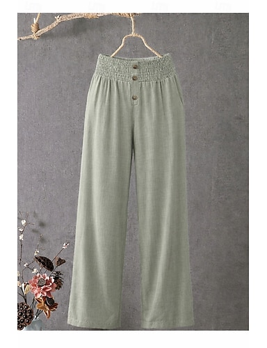 Dame Linbukser i bomull Bred Bukseben kinesisk Sommerbukser Ferie Gatemote Grunnleggende Full lengde Middels midje عادي Lomme Elastisk midje comfy Komfort Mikroelastisk utendørs Feriereise Gate