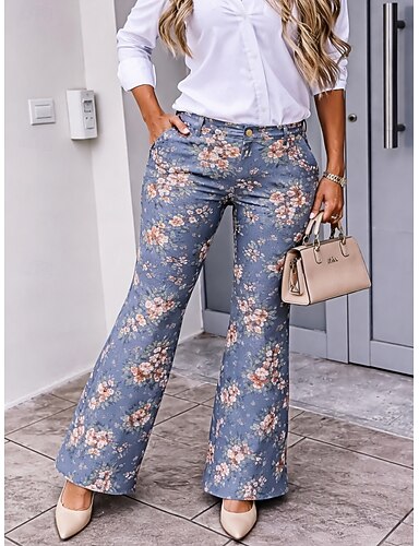 Dame Frekk Bukser Huske Ferie Årgang Etnisk stil Full lengde Medium Midje Blomstret Grafisk Mikroelastisk Hjem utendørs Feriereise Flerfarget Sommer Vår Høst Løstsittende