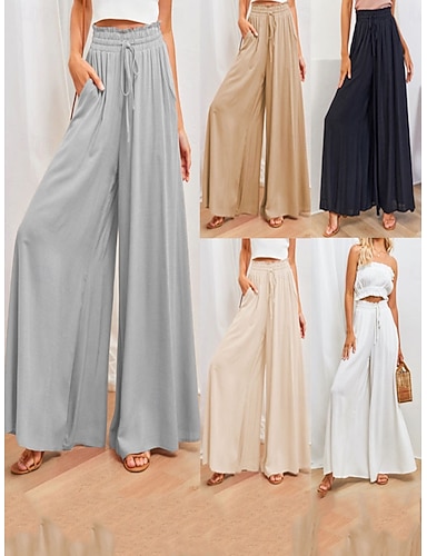Dame Bukser Dressbukser Posete bukser Ferie Mote Gatemote Full lengde Høy Midje عادي Elastisk midje Bred Bukseben Komfort Lettvekt Myk Elastisk utendørs Gate Ferie Blå Svart Hvit Rosa Sommer Vår Høst