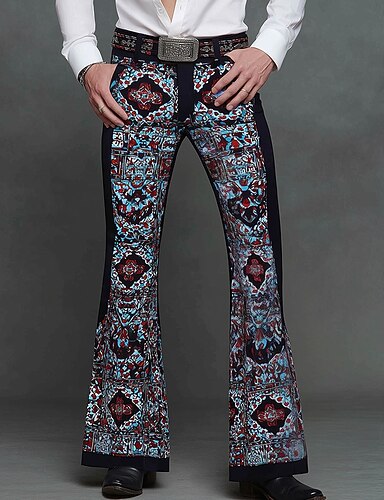 Herre Paisly Blomstermønster Etnisk Disco bukser 60- og 70-tallsbukser Medium Midje Vestlig Vintage retro utendørs Feriereise Avslappet Sidelommer Bukser med utsvingte ben Vår Høst 3D-utskrift Blå