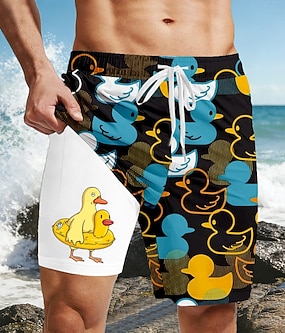Herre Tegneserie Morsom And Fôret shorts 2 i 1 svømmeshorts Badeshorts Medium Midje Hawaiisk Strandferie Sidelommer Med kompresjonsforing Elastisk snøring i midjen Designer Klær