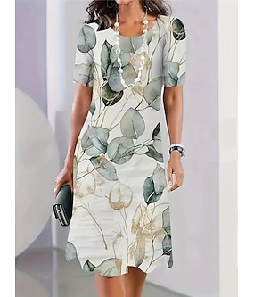 Dame's Elegante Fest Kvelds Midi Kjole Crew Neck Kort Erme Shift Kjole Sommer Kjole Casual Daglig Regulær Passform Blomster Grafisk Hvit Rosa Blå Grønn Sommer Vår Høst