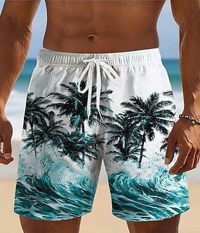 Herre Kokosnøttre Bølger Badeshorts Surfeshorts Strandshorts Medium Midje Tropisk Gatemote Hawaiisk Feriereise Daglig Ferie Snorer Elastisk midje 3D-utskrift Designer Klær