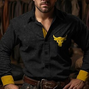 Herre Okse Fargeblokkering Skjorte Western skjorte Cowboyskjorte Langermet Vintage retro utendørs Feriereise Vår Høst Aftæpning 3D-utskrift Lin som skjorte Svart Kakifarget
