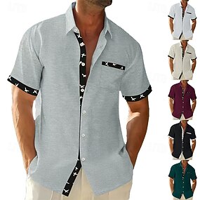 Herre Sommerskjorte Uformell skjorte Strandskjorte عادي Hawaiisk Ferie Svart Hvit Blå Kakifarget Kortermet V-hals Vår sommer Klær Grunnleggende