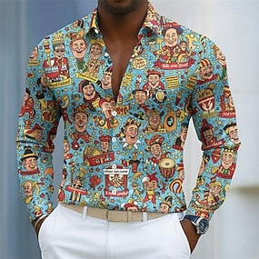 herre-karnevalsskjorte – grafisk heldekkende festivalkaraktertrykk