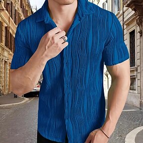 Herre Skjorte Konsistens Uformell skjorte Skjorte med knapper Svart Hvit Kongeblå Grønn Kortermet عادي Knaphul Avslappet Daglig Klær Mote Moderne Fritid Bekvem