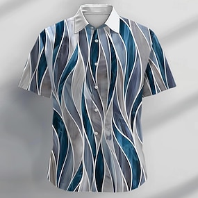 Herre Stripet Geometrisk mønster Skjorte Skjorte med knapper Kortermet Abstrakt Fritid Daglig Ferie Sommer Aftæpning Knepp opp 3D-utskrift Blå