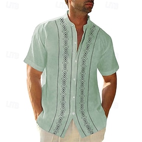 Herre Guayabera skjorte Sommerskjorte Uformell skjorte Skjorte med knapper Svart Hvit Blå Grønn Grå Kortermet Boho Paisley Damask Ensfarget / vanlig farge bestefars krage Båndkrage Feriereise Hawaiisk