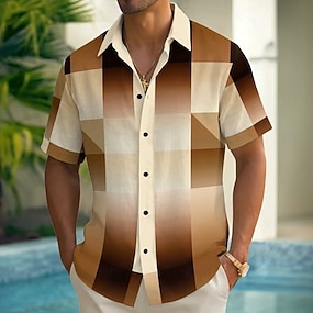 Herre Fargeblokk Lapper Gradientfarge Skjorte Skjorte med knapper Kortermet Fashion Casual Gateklær Feriereise Sommer Vår Aftæpning 3D-utskrift krage skjorter Blå Lilla Brun