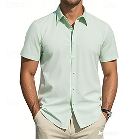 Herre Skjorte Dresskjorter Skjorte med knapper عادي Bryllup Fest Svart Hvit Lysegrønn Rosa Kortermet Knaphul Sommer Klær