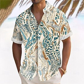 Herre Geometrisk Bølger Abstrakt kunst Skjorte Skjorte med knapper Aloha skjorte Kortermet Fashion Casual utendørs Feriereise Hverdag Sommer Vår Aftæpning 3D-utskrift krage skjorter Kakifarget