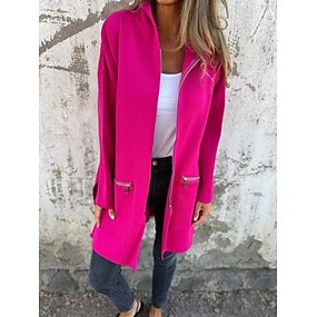 Dame Hettegenser Bekvem Pustende Glidelås Lomme Mote Daglig عادي utendørs Avslappet Daglig Glidelås Normal Med hette Normal Langermet Yttertøy Fuksia Grå Vår Høst