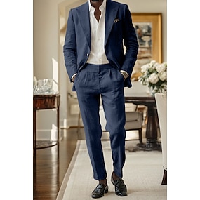 Menn Lindresser Forretningsdrakter Vårbryllup Skoleball Svart Navyblå Vår Dress Hakkjakkeslag Lettvekt Formelt Ensfarget Skreddersydd 2-delt sett Enkelt Brystet To-knapp