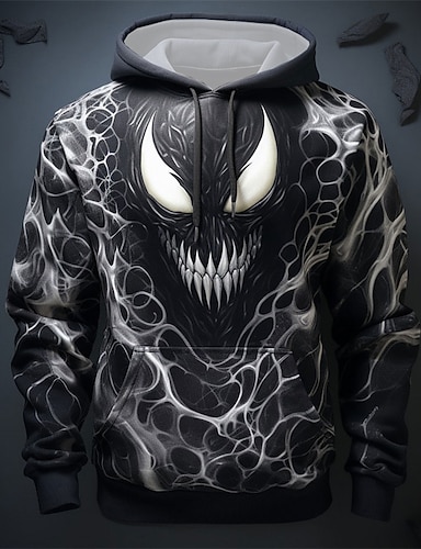 Halloween Herre Monster Hattetrøje Mote Daglig Fritid Langermet Med hette Feriereise Fest Gateklær Festival Grå Snorer Lomme Printer Høst Vinter Designer S M L XL 2XL 3XL