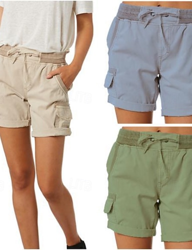 Dame Bermudashorts kinesisk Shorts Ferie Gatemote Fritid Kort Middels midje عادي Snorer Lomme comfy Komfort Uelastisk utendørs Gate Dagligdagstøy Aprikos Svart Hvit Militærgrønn Sommer Vår