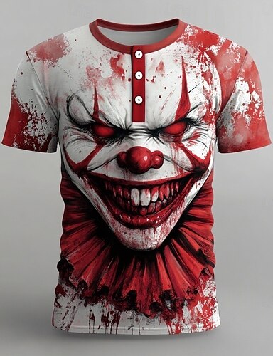 Herre Skummel klovn Joker Menneskelig ansikt T skjorte Henly-skjorte Kortermet Designer Grafisk Retro / vintage Avslappet Daglig Gate Sommer Vår Alle årstider 1# 2# 3# Henley Henley T-skjorte