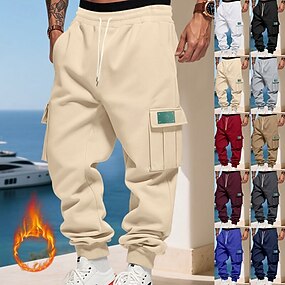 Herre Joggebukser Fleecebukser Jogger Vinterbukser Cargo joggebukse Snorer Lomme Elastisk midje عادي Komfort Varm Sport & Utendørs Daglig Mote Fritid Svart Hvit Mikroelastisk