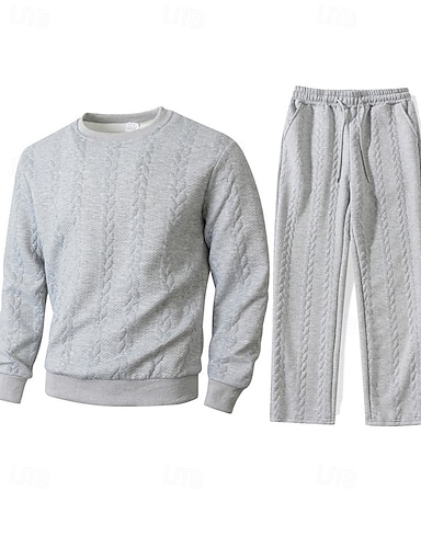Herre عادي Basic gensere Genser Joggedress sweatsuit Langermet Genser Henley Gatemote Grunnleggende Fritid Sport & Utendørs Daglig Ferie 2 deler Vår & Vinter