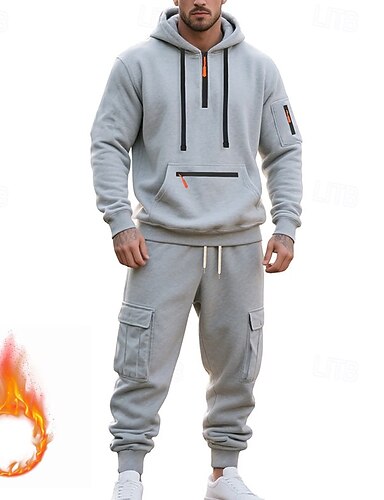 Herre Joggedress Antrekkssett Hettegenser Hettegenser utendørs Daglig Sport Snorer Lomme Halv glidelås عادي Svart Hvit Navyblå Polyester Fleece Lined Sportsklær Mote Gatemote Høst