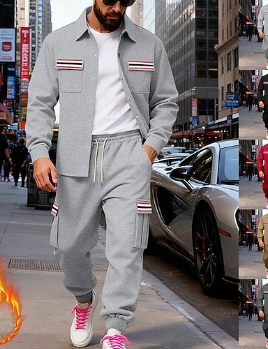 Herre Genser Joggedress Antrekkssett سترة Knaphul utendørs Daglig Sport Snorer Knepp opp Lomme Stripe Svart Rød Brun Polyester Sportsklær Mote Gatemote Høst