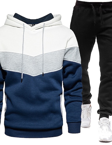 Herre Hattetrøje Joggedress Hettegenser og bukser Sett Hettegenser Daglig utendørs Feriereise Dagligdagstøy Lapper Lomme Halv glidelås Fargeblokk Blå Vinrød Svart Sportsklær Sport Mote Høst