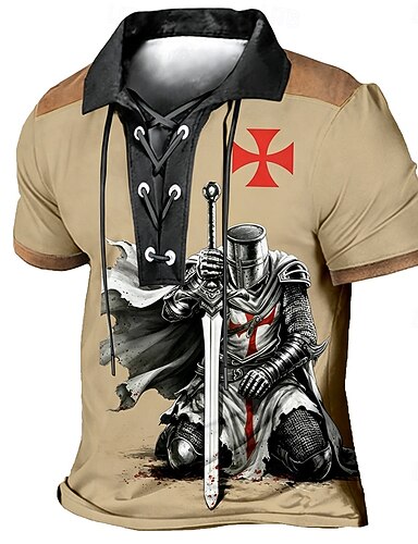 Herre Tempelridderne Poloskjorter Kortermet Poloskjorter Knaphul Årgang Fritid Gateklær Dagligdagstøy 3D-utskrift Pustende netting Vår sommer Blå Svart Brun
